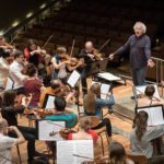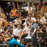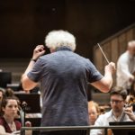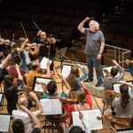 Open house day at Berlin Philharmonie. Sir Simon Denis Rattle, former conductor of the Berlin Philharmonic and chief conductor of the London Symphony Orchestra since 2017 during a rehearsal with an amateur orchestra at the Berlin Philharmonie.